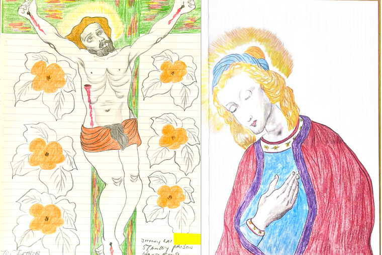 ジミー・ライがスタンレー刑務所で描いた聖母マリアの肖像画。バージニア州アレクサンドリアのセントメアリー大聖堂付属学校校長ロバート・ロイア氏へ、生徒からの絵葉書への感謝として贈られた。